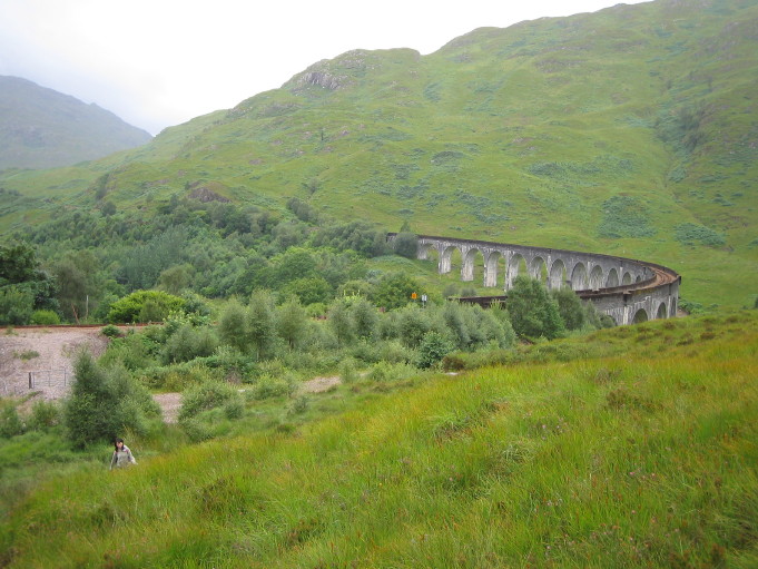 9:56にGlenfinnanのナショナル・トラスト・フォー・スコットランドのヴィジター・センターに到着。駐車場£2.00。ここはウエスト・ハイランド鉄道のハイライトのグレンフィナン・ヴァイアダクトという高さ30m、長さ381mのコンクリート製高架橋がある場所だ。この高架橋はハリーポッターの映画でホグワーツ号が走るシーンとしても登場する。高台から眺めると確かに美しい橋だ。列車の来る時間を調べていなかったので駐車場に戻る途中で、雨が降り始める。駐車場では高架橋を見ている観客が多く、どうやらもうすぐ列車が来るようだ。一緒にしばらく待ってみるが、遅れているのかなかなか来ないので、諦めて11:15に出発する。