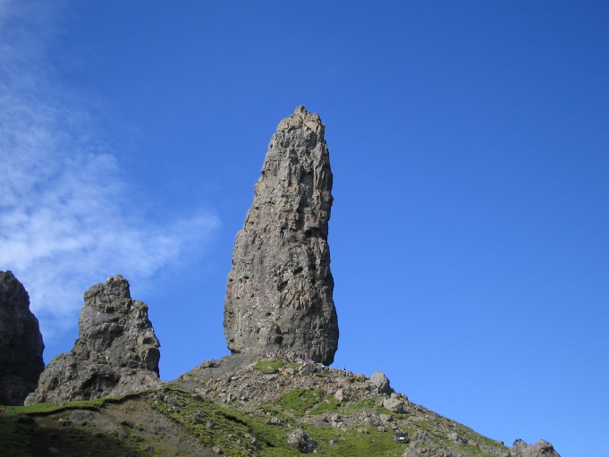 チェックイン後、14:30に島の東の海岸線沿いのA855を北に向かって走る道に出発。15:15にThe Old Man of Storrに到着。老人の顔の形をした高さ719mの岩の尖塔で、この岩のふもとまで延びるフットパスを歩く。途中で、朝食のときに話していた夫妻に偶然で出会う。16:15に頂上に到着。スカイ島の東海岸が見渡せ、いい眺めだ。16:23に下り始めて、16:56に到着。下りは速い。