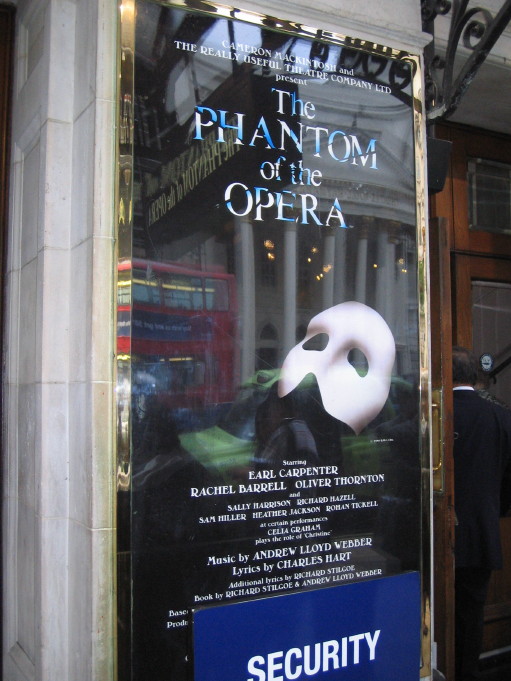 Her Majesty Theatreへオペラ座の怪人を見に行く。プログラム£3.00を買う。去年キャッツを見たときは会場が暑いせいもあってか途中眠くなってしまったが、今回は事前にCDをかなり聴き込んだせいもあって、とても楽しい。CDを貸してくれた日本人の感想どおり、CristineはCDの方がいいが、Phantomは最高。幕間でシャルドネの白ワイン£5.40を飲む。