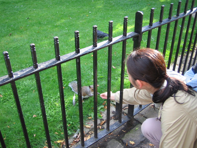 待ち合わせのヨーヴィック前のスターバックスへ。カフェオレとアイスカフェオレで£3.20。C&Tと合流して、Rafi'sでMadrasを買って、モンク・バーからブーサム・バーまで城壁を歩く。その後ミュージアム・ガーデンに行って、リスにピーナッツをやって遊ぶ。2人とも喜ぶ。