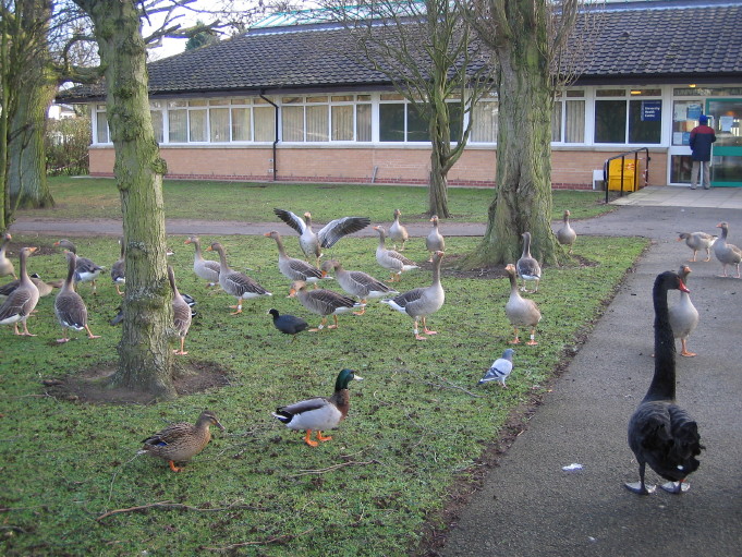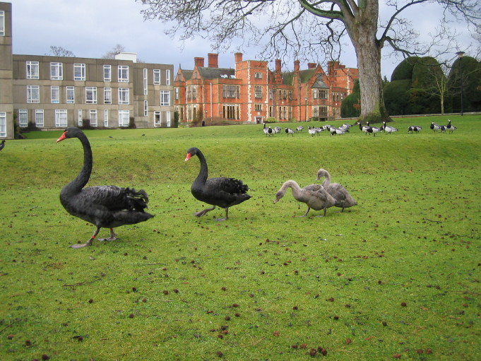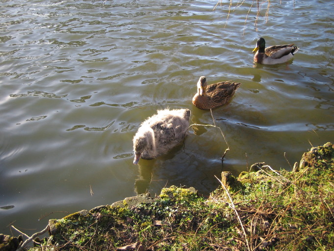 昼食はDerwent Collegeで鶏肉のモロッコ風焼£2.50。ベルギー帰りのためか、不味く感じる。久しぶりに黒鳥の子を見る。ずいぶん大きくなったが、一羽脚を痛めているようで、他の親子は陸にいるのに一羽だけ池にいる。