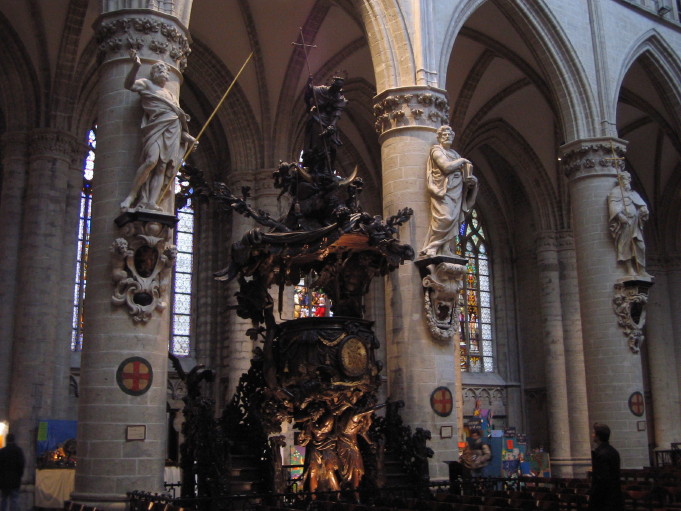 昨晩は部屋が乾燥しているのと、風邪のせいで、のどが痛いほど乾いている。朝食はホテルでビュッフェ。パン、チーズ、ハムが中心でいまいち。コーヒーもいまいち。部屋に手元にある小銭の0.80EURをチップとして置いていく。ホテルの隣の植物園を抜けて、メトロ、トラム、バスの共通一日券3.80EURを買い、早速トラムに乗ってみる。なぜか検札が全くないが、それでも切符をトラムの機械に通していく人も多い。王立美術館前で降りて、グランプラスまで歩き、ビール博物館へ。4.00EUR。ビールをつくる機械が置いてある部屋が1〜2部屋あるだけの、ちょっとしょぼい博物館だ。ビデオだけはやたらと長いが、真面目に見ているとまあまあおもしろい。帰りにビールが1杯ついてくる。ビール代と思えば4.00EURはまあまあか。次はサン・ミッシェル大聖堂へ。ここは国王の戴冠式や結婚式に使われただけあって、なかなか立派な教会だ。楽園追放の木像がなかなかいい。1.00EUR寄付する。