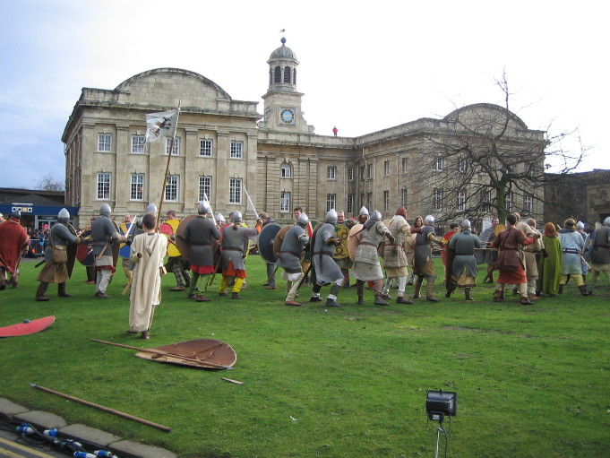 朝食はオレンジジュースと、インゲンの胡麻和えと、韓国雑炊と、ヨーグルトと、紅茶。ヴァイキング・フェスティバルに出かける。ウーズ川でのヴァイキング・ボート、ミュージアム・ガーデンでの戦闘の練習と行進、キャッスル・ミュージアム前でのヴァイキングとイギリス軍との戦闘等を見るが、どれもぱっとしない。戦士役が練習不足の素人集団のような感じなのが盛り上がりに欠ける原因だろう。川べりでやっていた試食のノルウェイチーズが美味しく感じる。昼食はSpurriergate Centreで、ヨークシャープディングとオニオングレービーと、レモン・メレンゲケーキと、コーヒー2杯で£8.80。